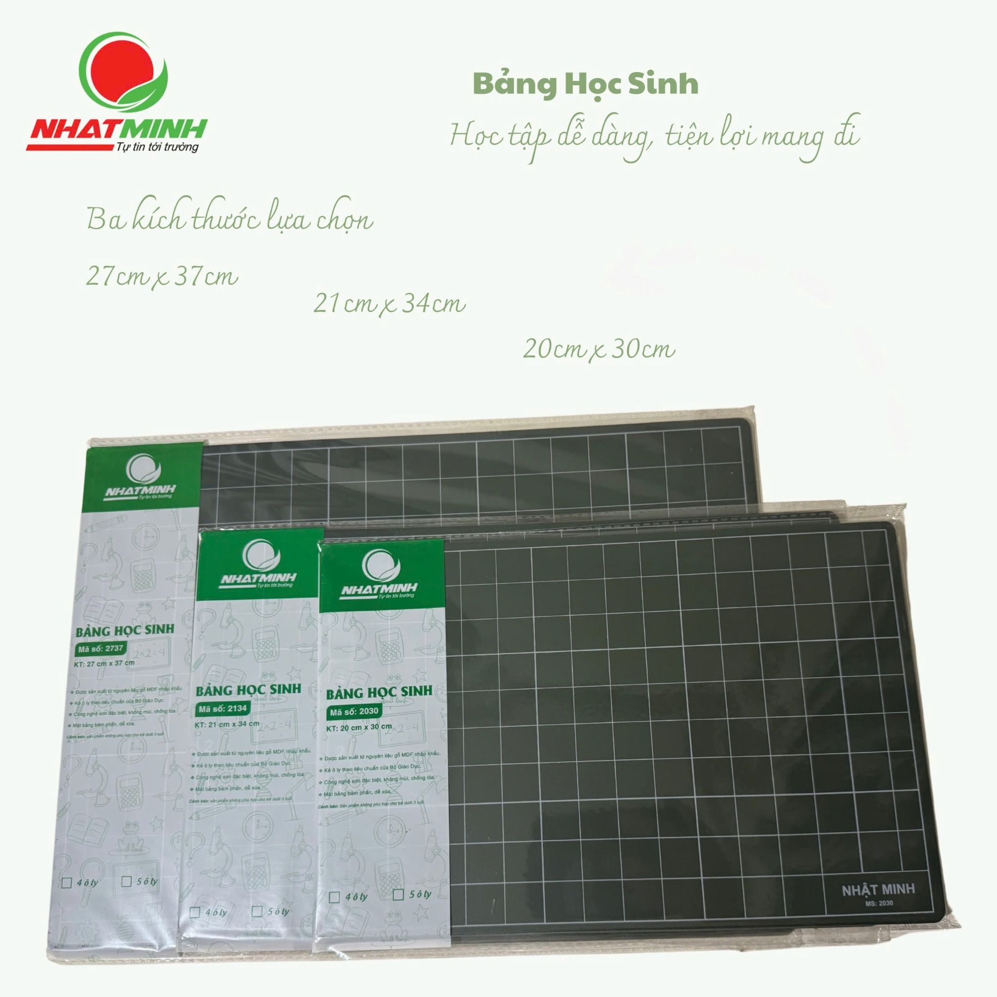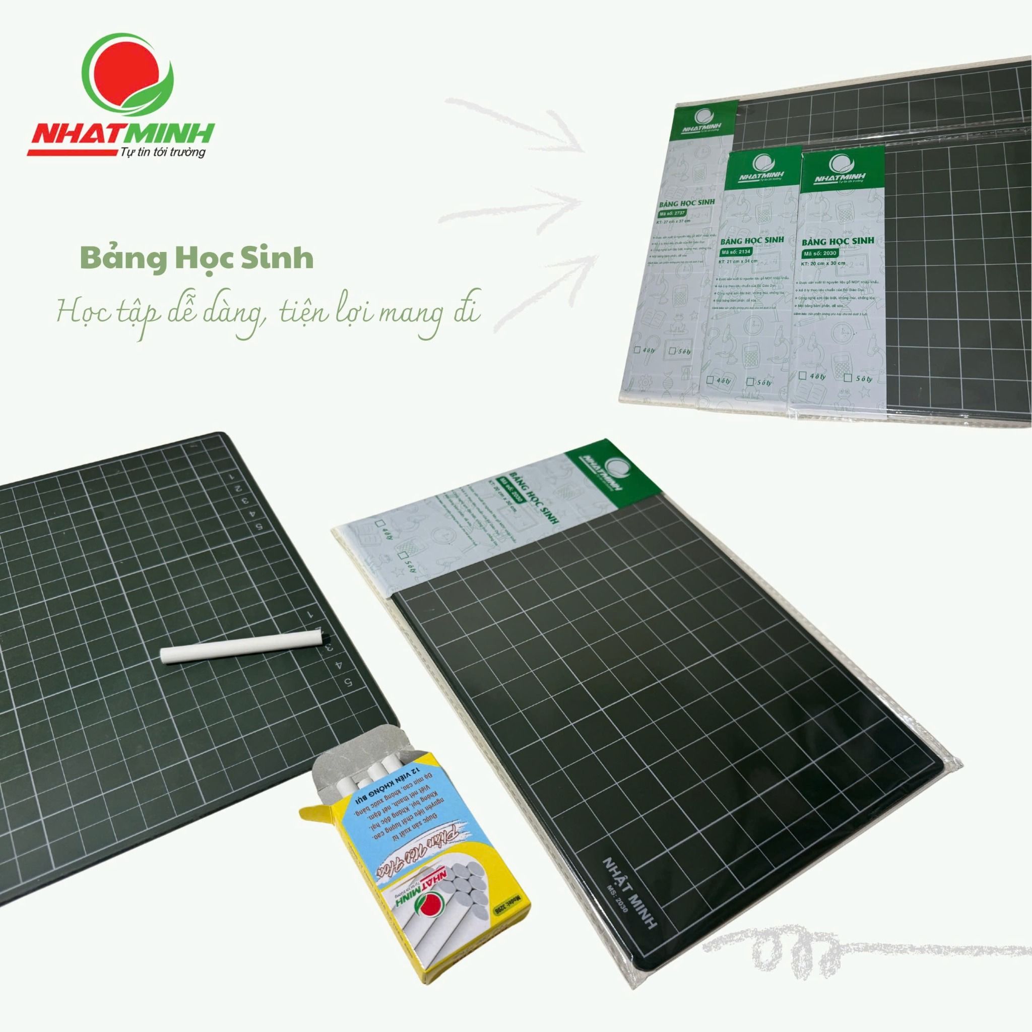 Bảng Nhật Minh 2134 được thiết kế phù hợp với học sinh tiểu học, với hai mặt bảng đều có màu xanh, dùng để viết phấn. Giúp bé tự tin viết chữ và làm toán.