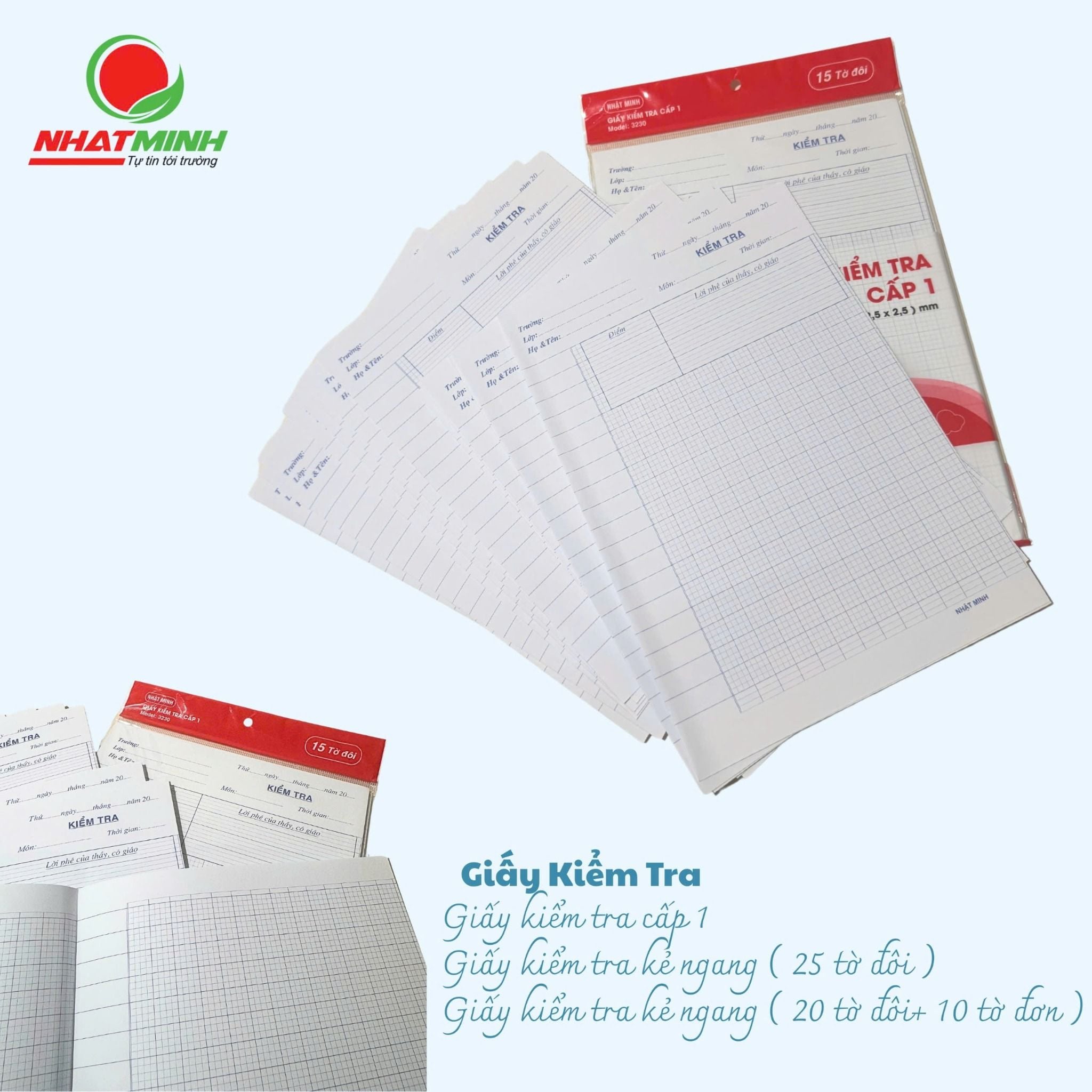 Giấy Kiểm tra 4 Ô Ly Nhật Minh - 3230 phù hợp cho học sinh cấp I. Dòng kẻ rõ nét, giấy viết không nhòe.