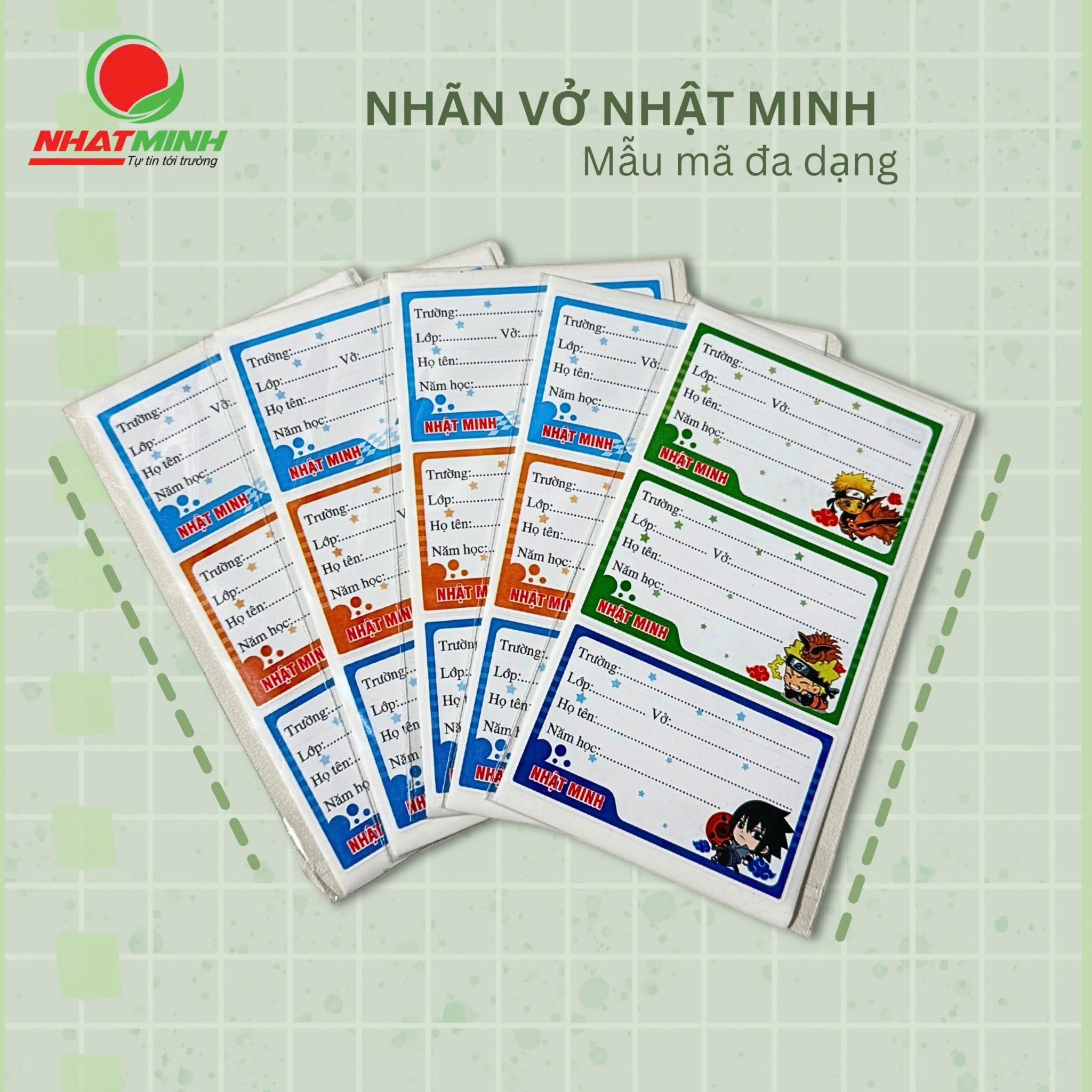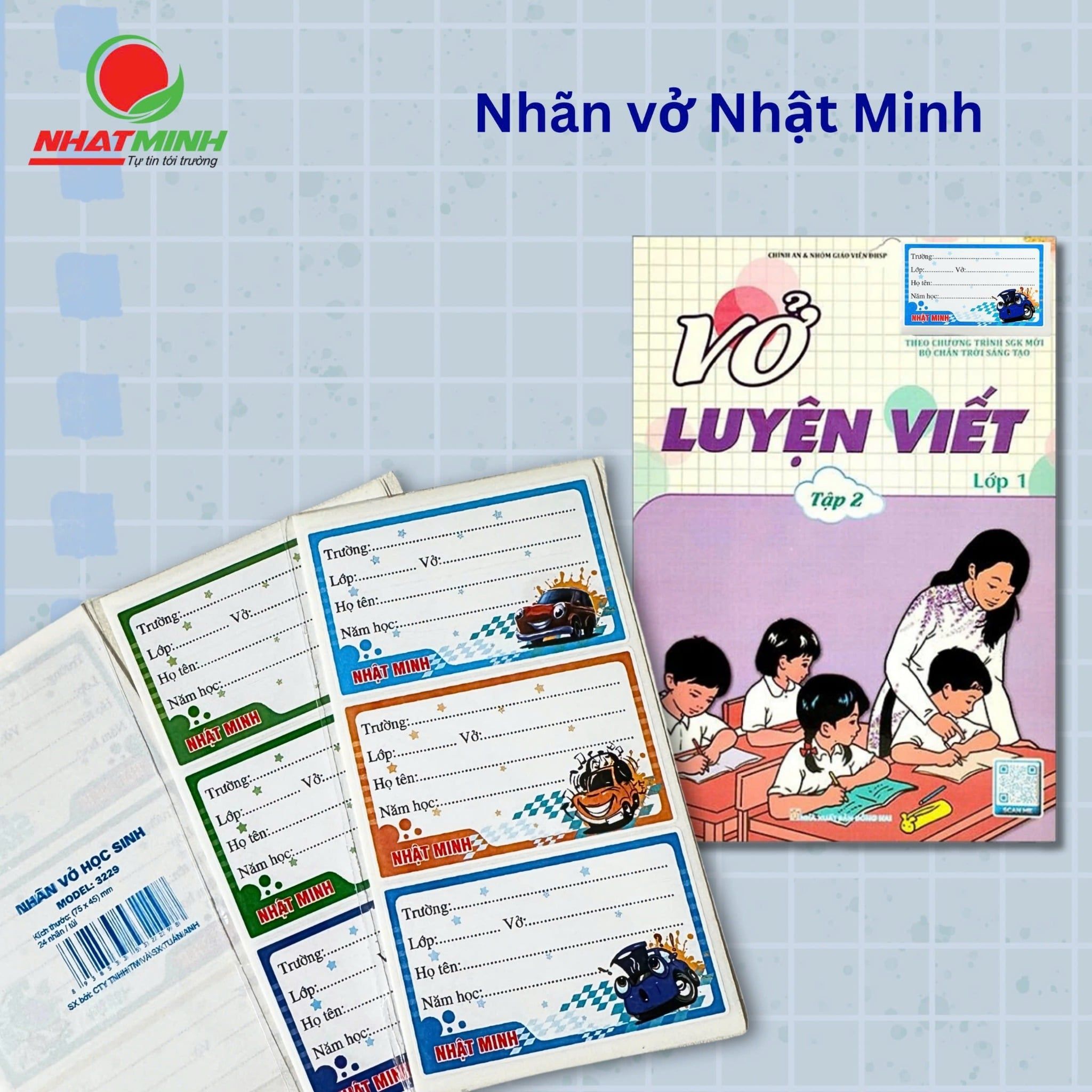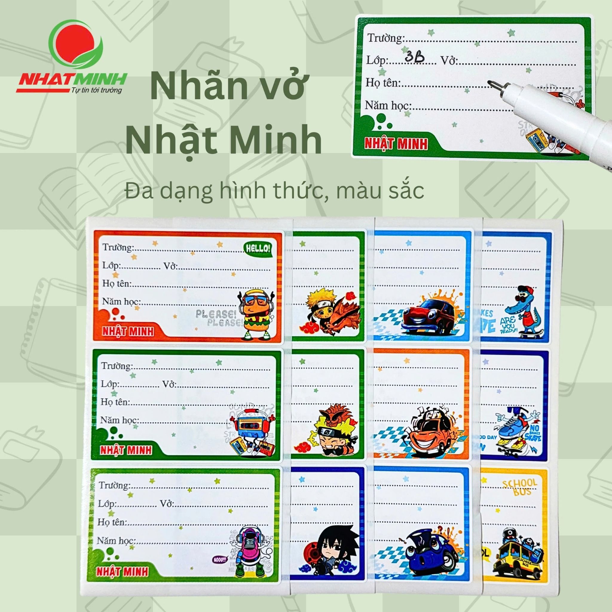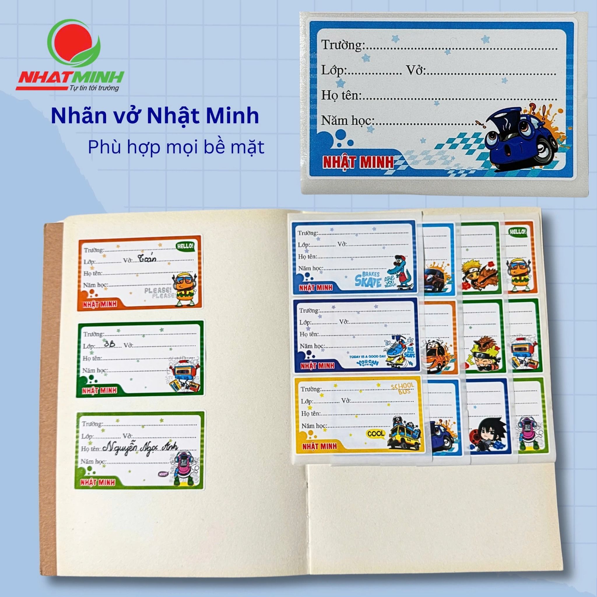 Nhãn vở Nhật Minh -  Mã SP: 3229 có phong cách thiết kế ngộ nghĩnh với hình ảnh ngộ nghĩnh, đáng yêu thích hợp cho học sinh tiểu học, trung học cơ sở. Sản phẩm được sản xuất từ giấy Decal chất lượng cao dễ dàng sử dụng